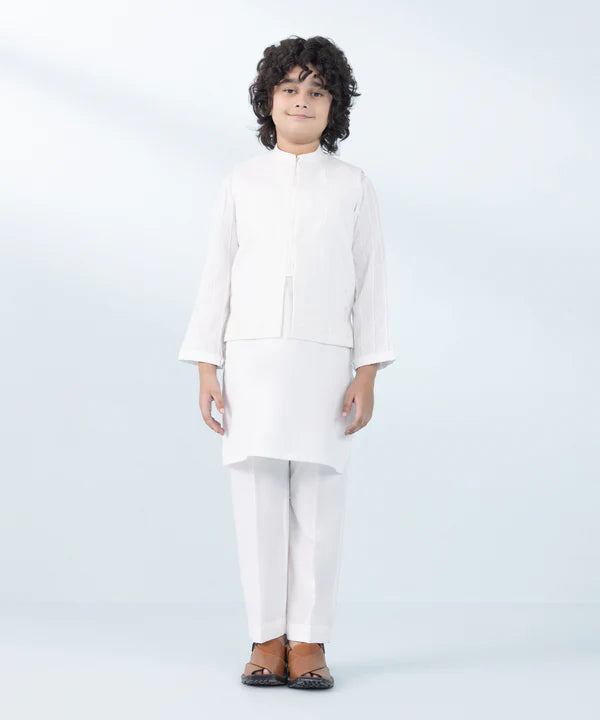 Dress your little one in our embroidered white waistcoat with a band neckline.