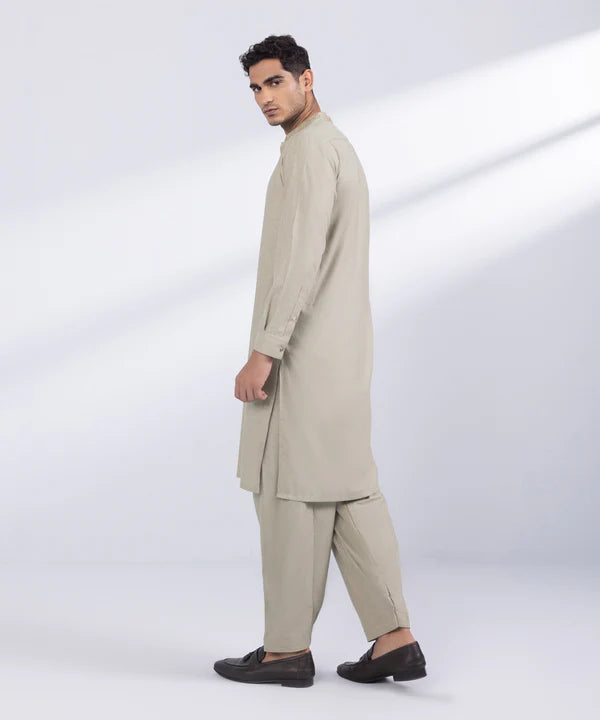 Leave a lasting impression this season in our coffee, wash & wear straight kurta and shalwar with embroidery.