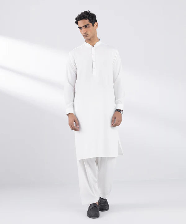 Make a sophisticated statement this season in our solid white, premium wash and wear kurta and trousers.