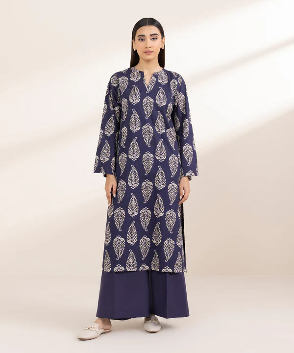 Printed Front Panel, Printed Back Panel, Round With Slit Neckline, Full Sleeves, Below Knee Length