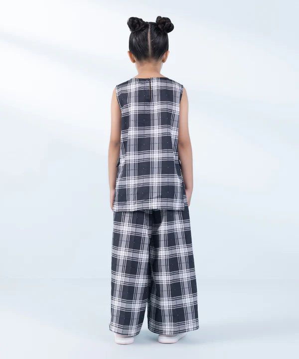 Dress your little one in our black cotton satin printed cropped shirt with a round neckline and pants.