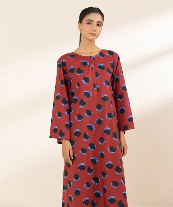Printed Front Panel, Printed Back Panel, Round with a Placket Neckline, Full Sleeves