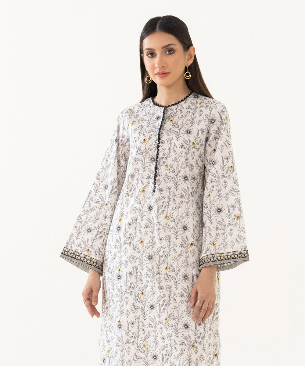 Printed Front With Embroidery, Printed Back, Full Sleeves, Round Neckline